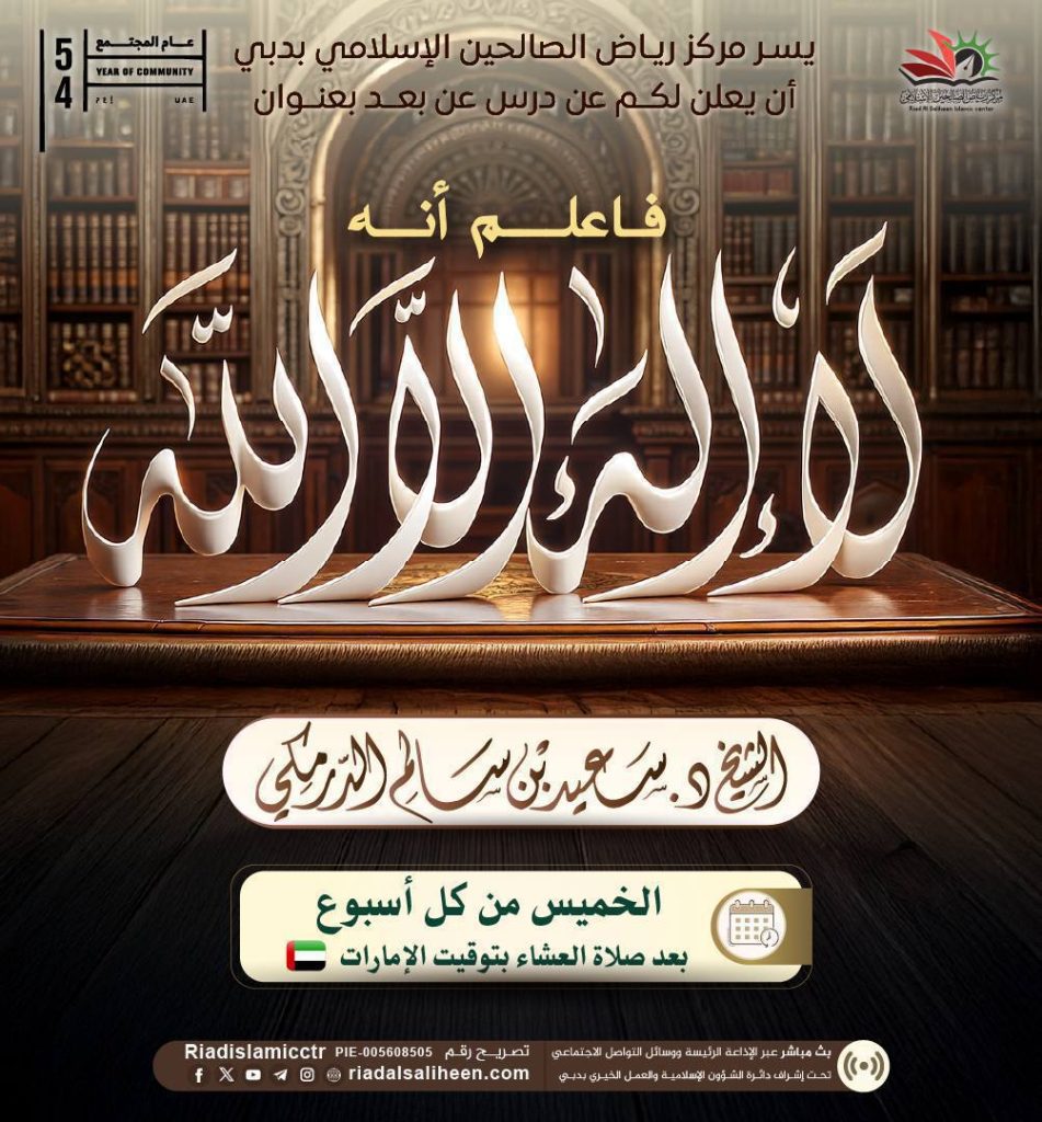 يسر مركز رياض الصالحين الإسلامي بدبي أن يعلن لكم عن درس يومي (عن بعد) بعنوان: