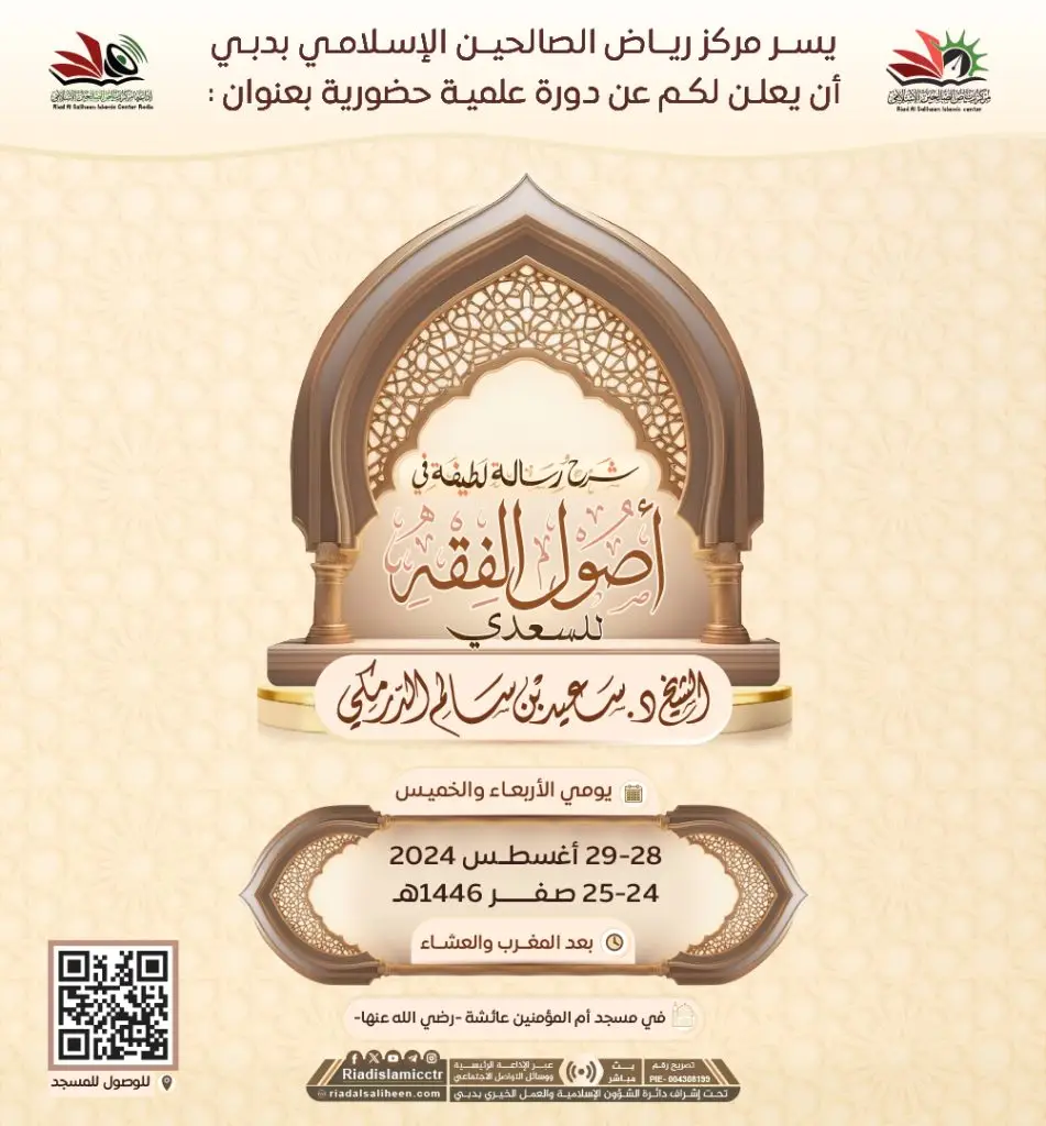 أن يعلن لكم عن إقامة دورة علمية شرعية حضورية بعنوان: