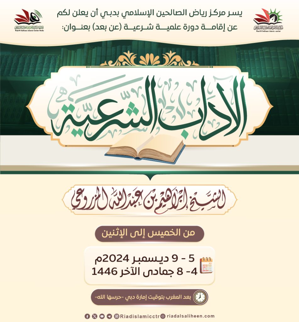 يسر مركز رياض الصالحين الإسلامي بدبي أن يعلن لكم عن إقامة دورة علمية شرعية (عن بعد) بعنوان: