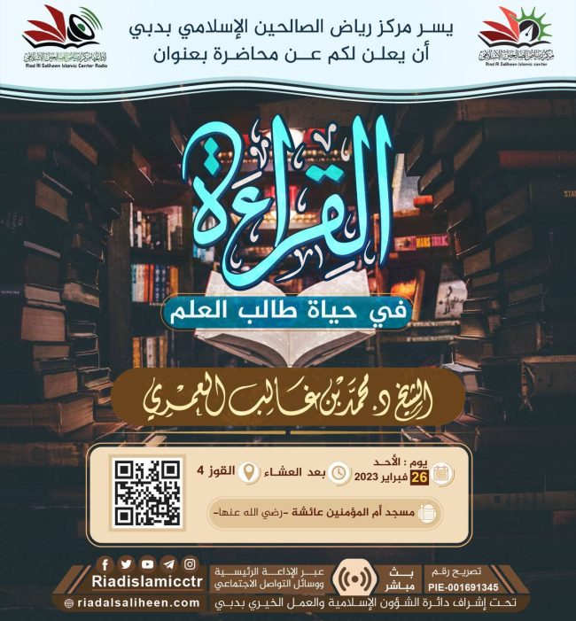 يسر مركز رياض الصالحين الإسلامي بدبي أن يعلن لكم عن محاضرة بعنوان: