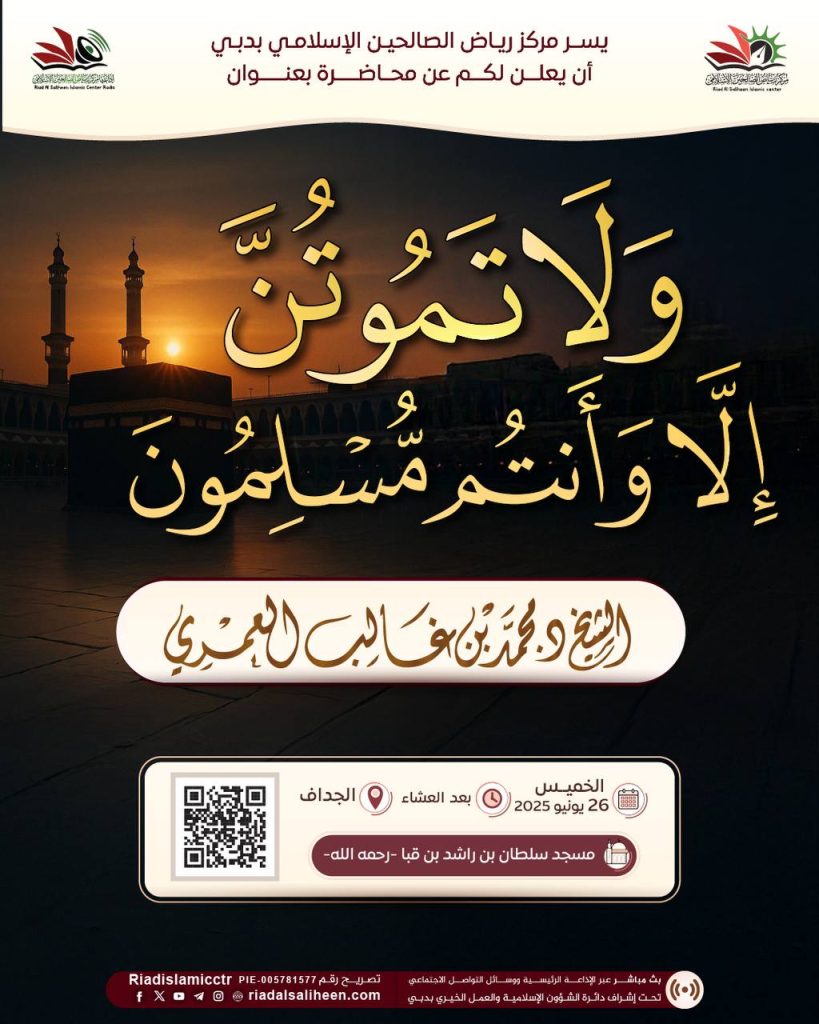 يسر مركز رياض الصالحين الإسلامي بدبي أن يعلن لكم عن إقامة محاضرة بعنوان: