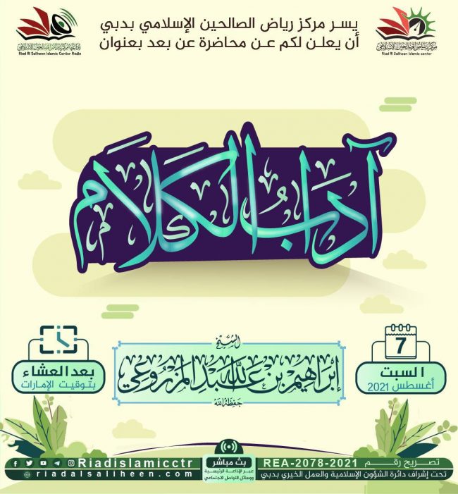 يسر مركز رياض الصالحين الإسلامي بدبي أن يعلن لكم عن درس أسبوعي جديد “عن بعد” في شرح: