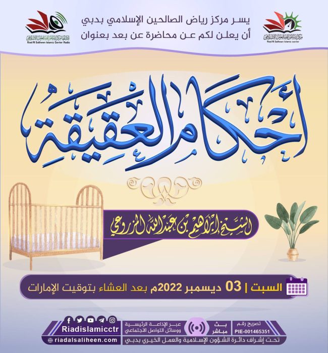يسر مركز رياض الصالحين الإسلامي بدبي أن يدعوكم للاستماع للبث المباشر “عن بعد” لمحاضرة بعنوان: