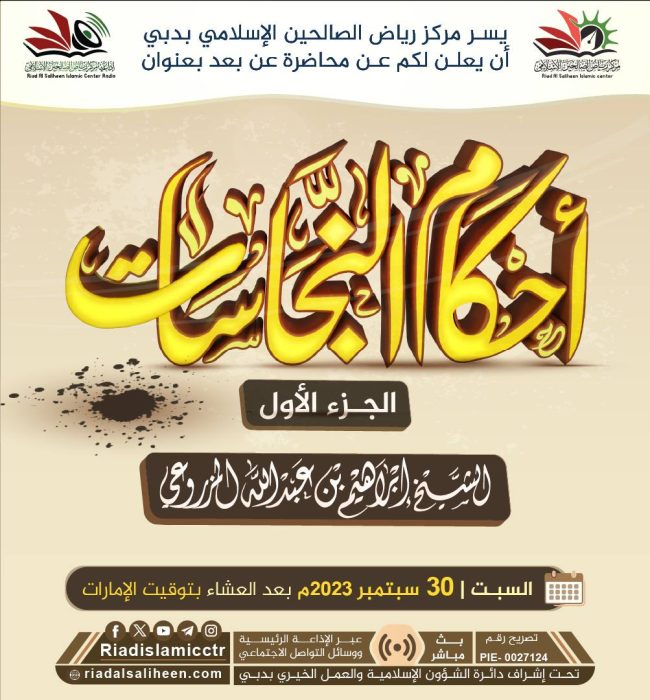 يسر مركز رياض الصالحين الإسلامي بدبي أن يدعوكم للاستماع للبث المباشر “عن بعد” لمحاضرة بعنوان: