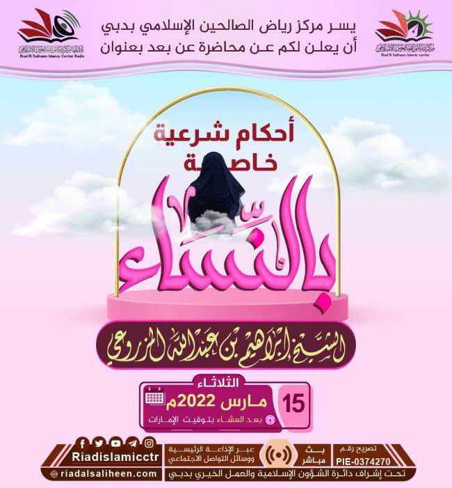 يسر مركز رياض الصالحين الإسلامي بدبي أن يدعوكم للاستماع للبث المباشر “عن بعد” لمحاضرة بعنوان: