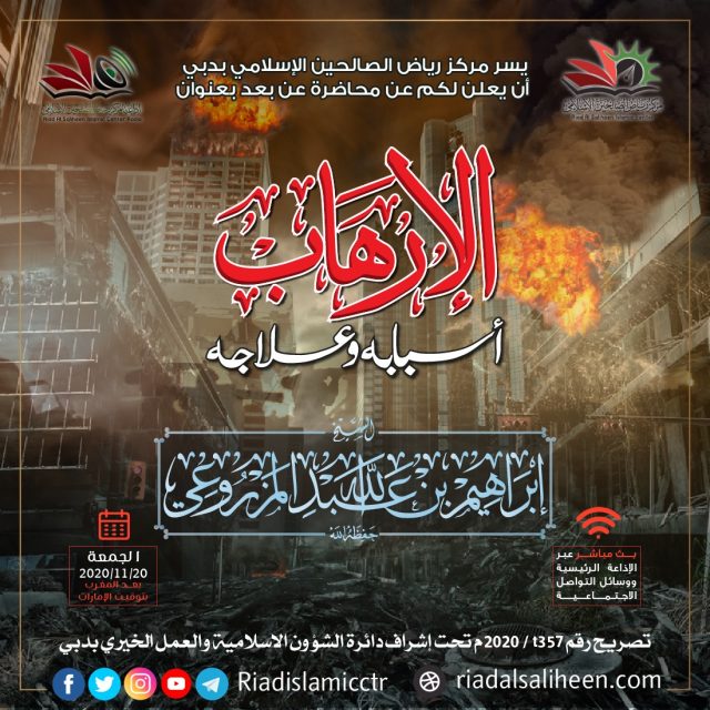 يسر مركز رياض الصالحين الإسلامي بدبي أن يعلن لكم عن محاضرة “عن بعد” بعنوان: