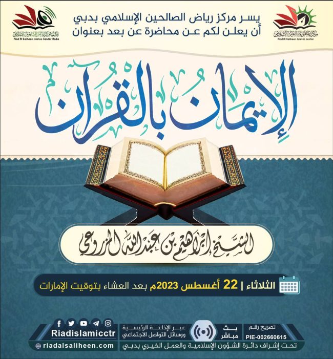 يسر مركز رياض الصالحين الإسلامي بدبي أن يدعوكم للاستماع للبث المباشر “عن بعد” لمحاضرة بعنوان: