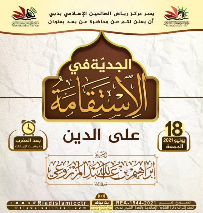 يسر مركز رياض الصالحين الإسلامي بدبي أن يعلن لكم عن درس أسبوعي جديد “عن بعد” في شرح:
