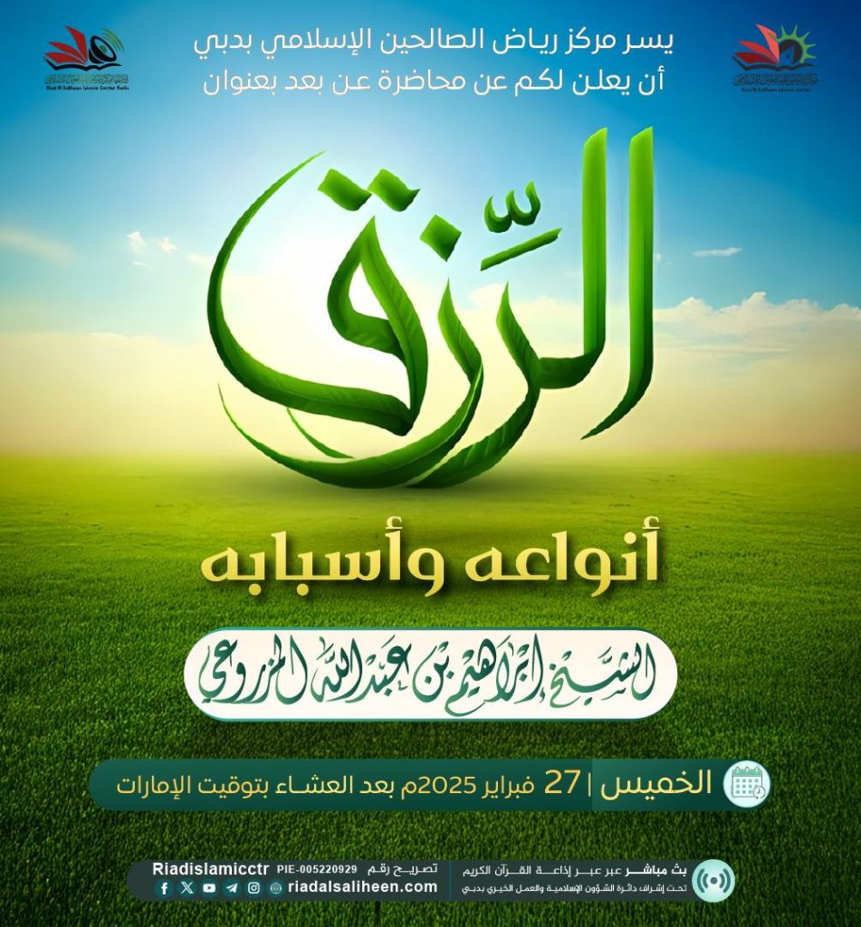 يسر مركز رياض الصالحين الإسلامي بدبي أن يعلن لكم عن محاضرة “عن بعد” بعنوان: