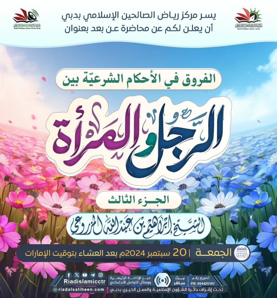 يسر مركز رياض الصالحين الإسلامي بدبي أن يدعوكم للاستماع للبث المباشر “عن بعد” لمحاضرة بعنوان: