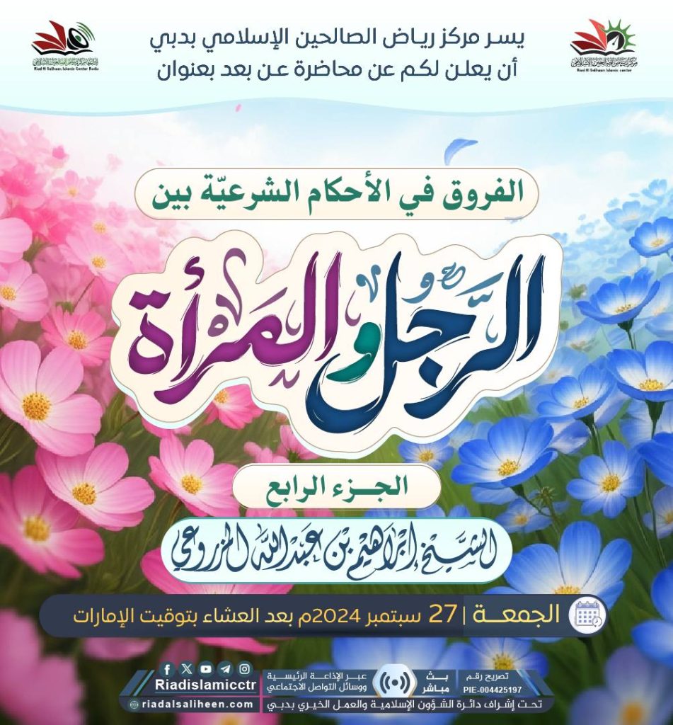 محاضرة عن بعد بعنوان : ( الفروق الشرعية بين الرجل والمرأة | الجزء الرابع)
