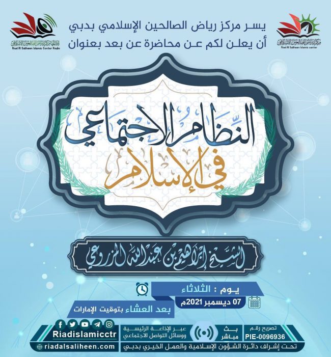 محاضرة عن بعد بعنوان: (النظام الاجتماعي في الإسلام)