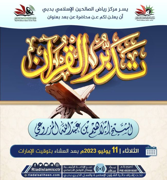 يسر مركز رياض الصالحين الإسلامي بدبي أن يدعوكم للاستماع للبث المباشر “عن بعد” لمحاضرة بعنوان: