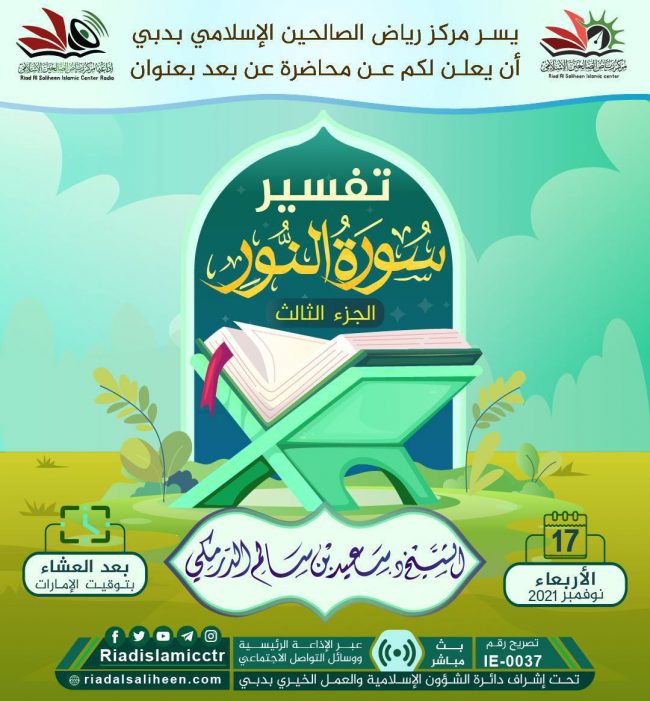 محاضرة عن بعد بعنوان: (تفسير سورة النور | الجزء الثالث)