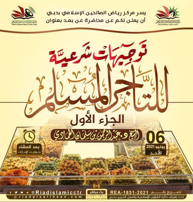 يسر مركز رياض الصالحين الإسلامي بدبي أن يعلن لكم عن محاضرة “عن بعد” بعنوان:
