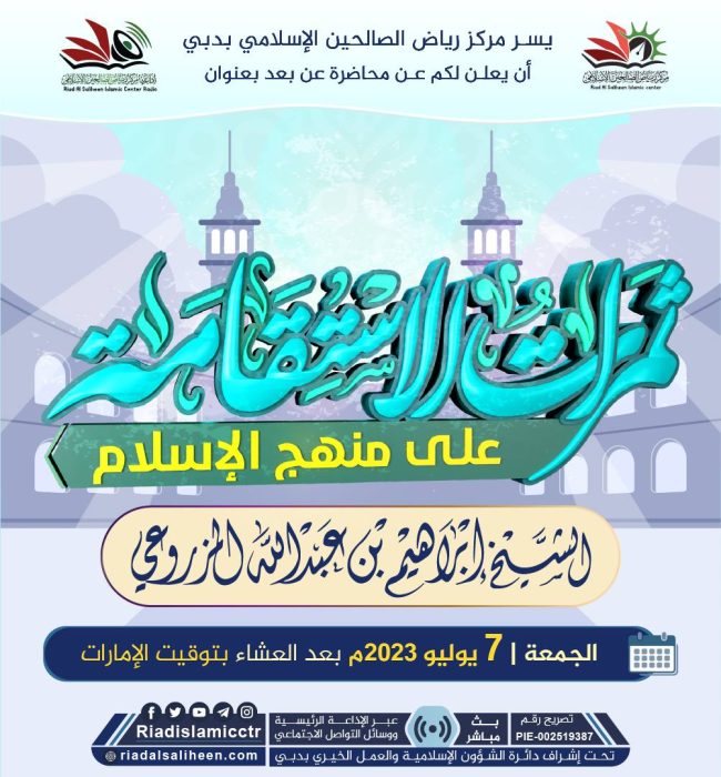 يسر مركز رياض الصالحين الإسلامي بدبي أن يدعوكم للاستماع للبث المباشر “عن بعد” لمحاضرة بعنوان: