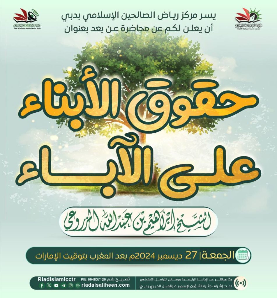يسر مركز رياض الصالحين الإسلامي بدبي أن يدعوكم للاستماع للبث المباشر “عن بعد” لمحاضرة بعنوان: