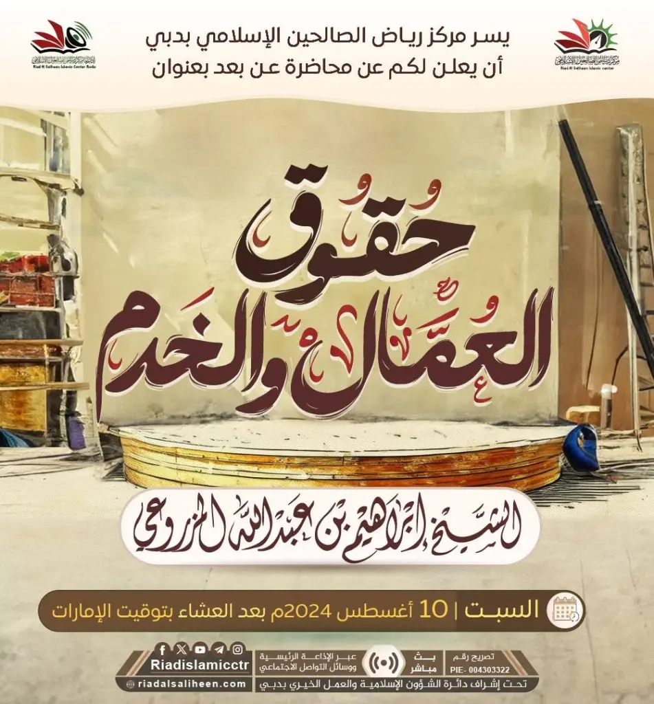 يسر مركز رياض الصالحين الإسلامي بدبي أن يدعوكم للاستماع للبث المباشر “عن بعد” لمحاضرة بعنوان: