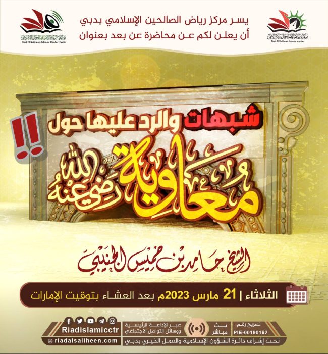 يسر مركز رياض الصالحين الإسلامي بدبي أن يدعوكم للاستماع للبث المباشر “عن بعد” لمحاضرة بعنوان: