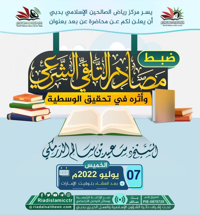 يسر مركز رياض الصالحين الإسلامي بدبي أن يدعوكم للاستماع للبث المباشر “عن بعد” لمحاضرة بعنوان: