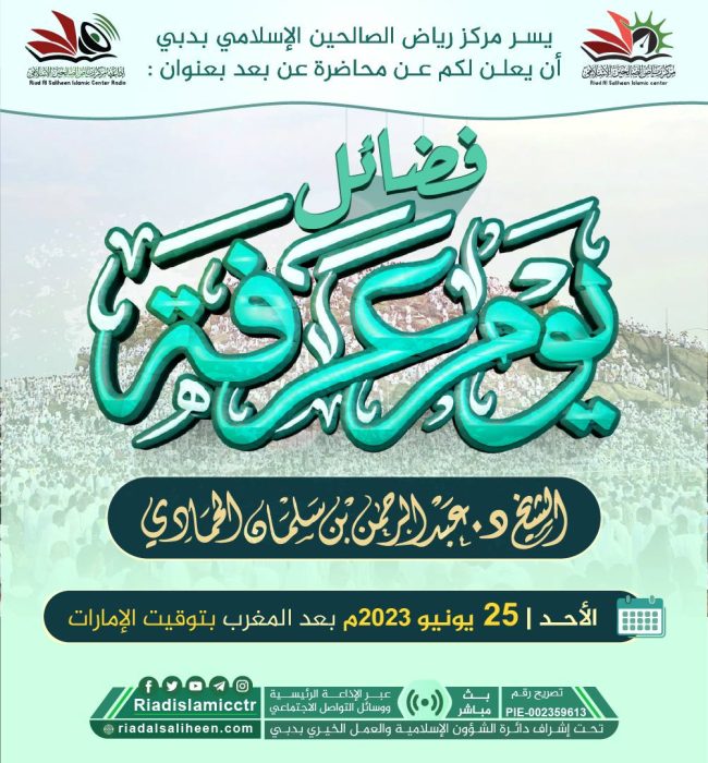 يسر مركز رياض الصالحين الإسلامي بدبي أن يدعوكم للاستماع للبث المباشر “عن بعد” لمحاضرة بعنوان: