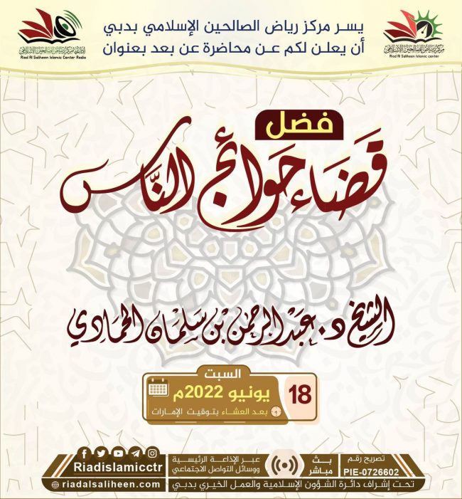 يسر مركز رياض الصالحين الإسلامي بدبي أن يدعوكم للاستماع للبث المباشر “عن بعد” لمحاضرة بعنوان: