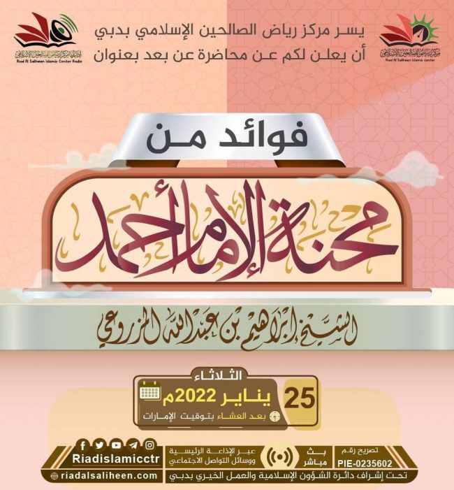 محاضرة عن بعد بعنوان: ( فوائد من محنة الإمام أحمد )