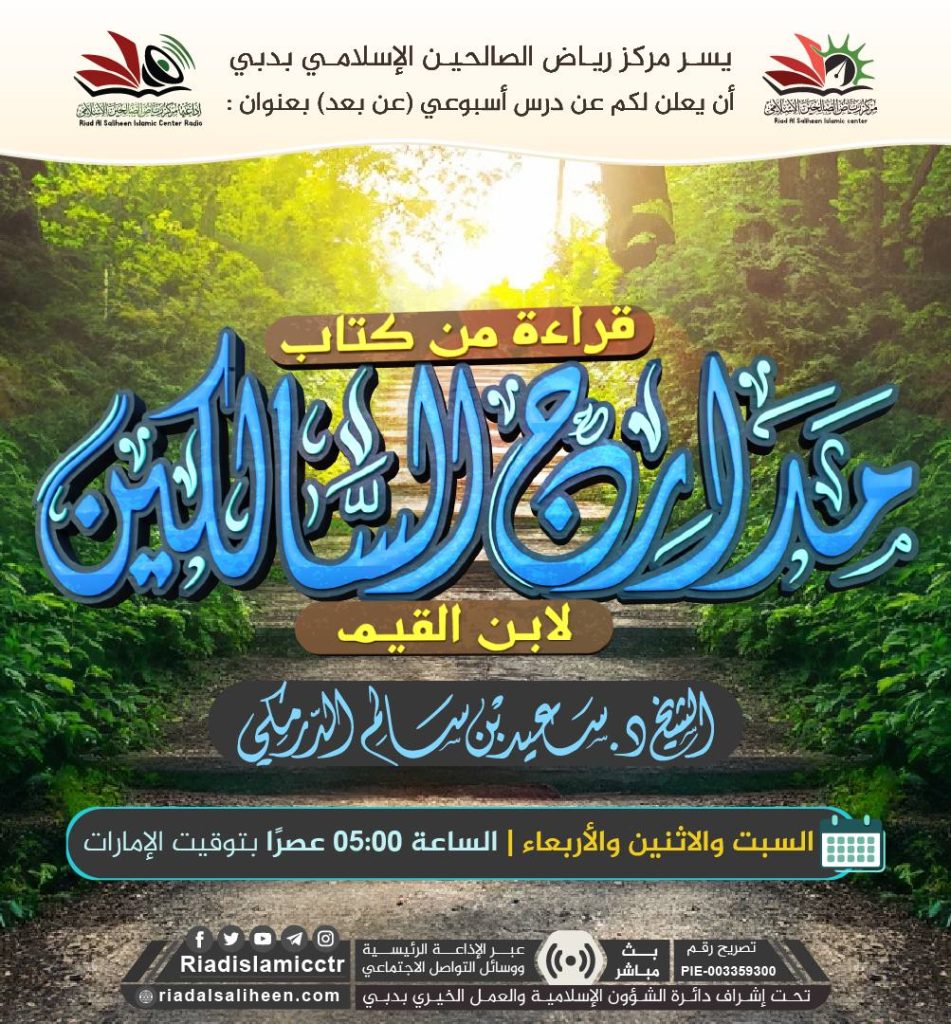 درس أسبوعي السبت والاثنين والأربعاء | الخامسة عصرًا | قراءة من كتاب مدارج السالكين لابن القيم