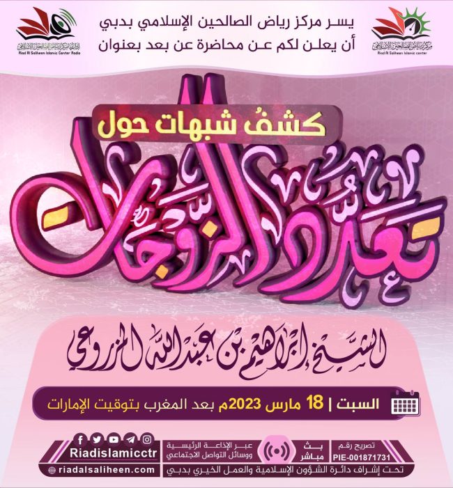 يسر مركز رياض الصالحين الإسلامي بدبي أن يدعوكم للاستماع للبث المباشر “عن بعد” لمحاضرة بعنوان: