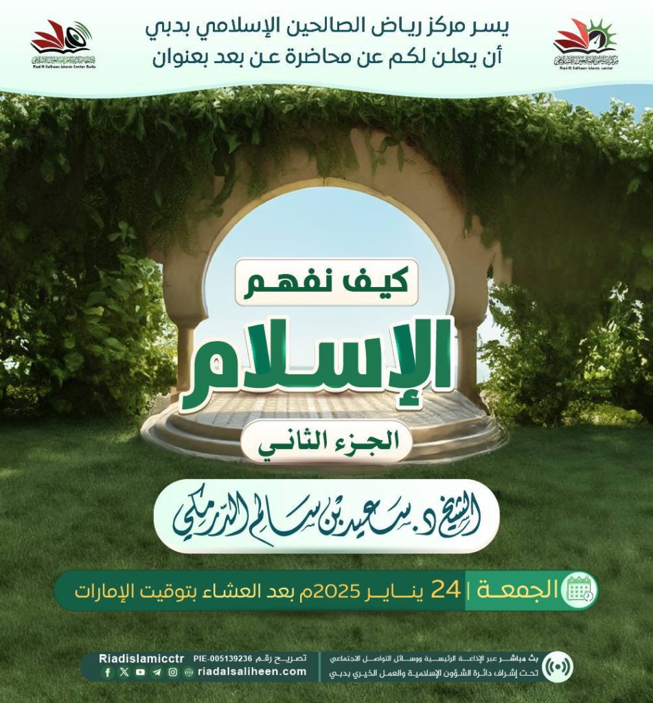 يسر مركز رياض الصالحين الإسلامي بدبي أن يدعوكم للاستماع للبث المباشر “عن بعد” لمحاضرة بعنوان:
