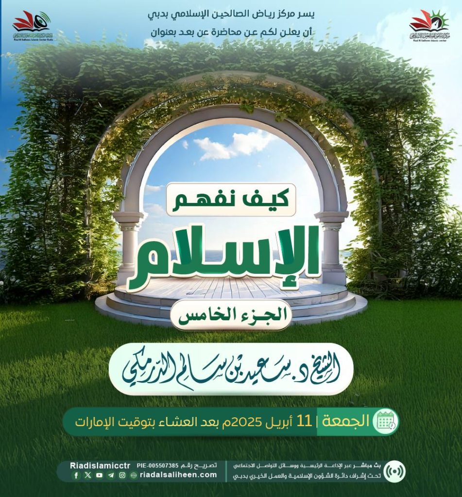صيانة الإسلام للمرأة يسر مركز رياض الصالحين الإسلامي بدبي أن يعلن لكم عن محاضرة “عن بعد” بعنوان: