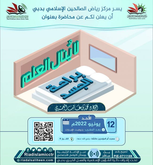 يسر مركز رياض الصالحين الإسلامي بدبي أن يدعوكم للاستماع للبث المباشر “عن بعد” لمحاضرة بعنوان: