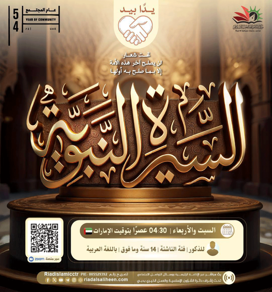 يسر مركز رياض الصالحين الإسلامي بدبي أن يعلن لكم عن إقامة محاضرات (عن بعد) ضمن مبادرات المركز في “عام المجتمع” تحت شعار: