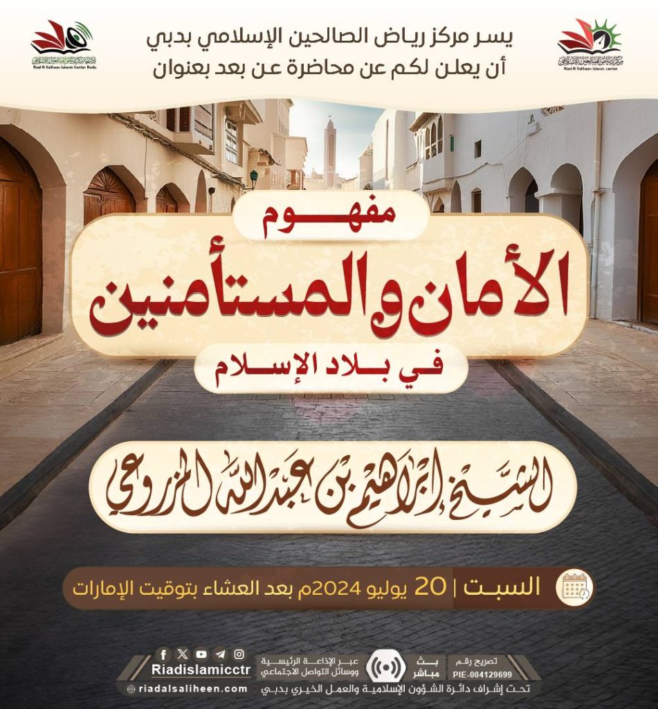 يسر مركز رياض الصالحين الإسلامي بدبي أن يدعوكم للاستماع للبث المباشر “عن بعد” لمحاضرة بعنوان:
