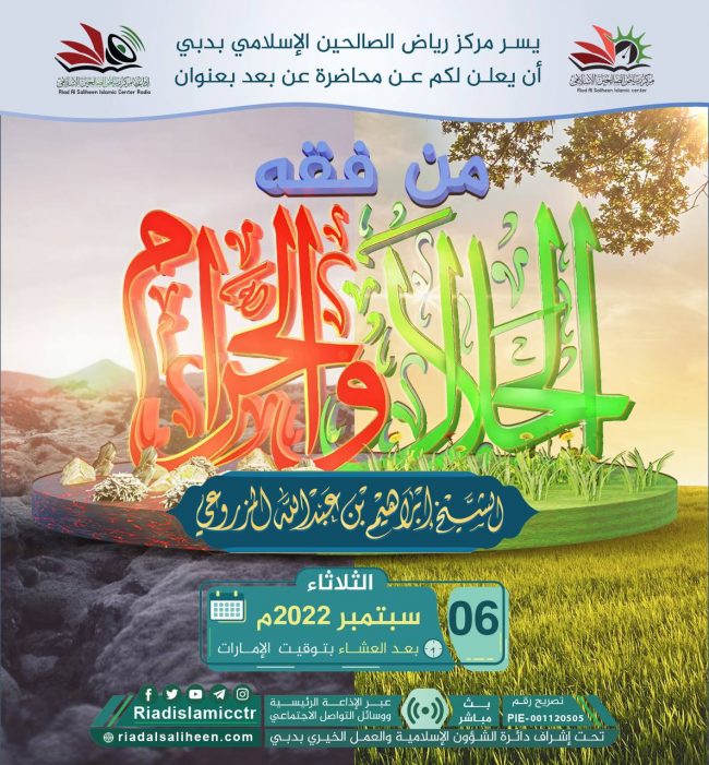 يسر مركز رياض الصالحين الإسلامي بدبي أن يدعوكم للاستماع للبث المباشر “عن بعد” لمحاضرة بعنوان: