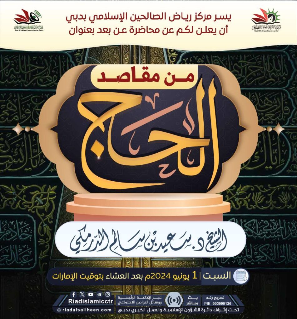 يسر مركز رياض الصالحين الإسلامي بدبي أن يدعوكم للاستماع للبث المباشر “عن بعد” لمحاضرة بعنوان: