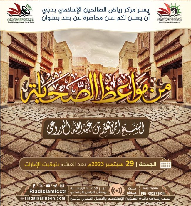يسر مركز رياض الصالحين الإسلامي بدبي أن يدعوكم للاستماع للبث المباشر “عن بعد” لمحاضرة بعنوان: