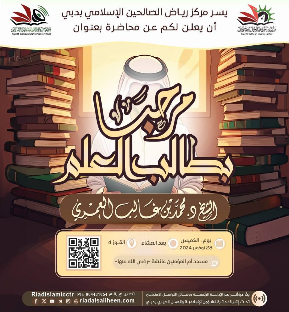يسر مركز رياض الصالحين الإسلامي بدبي أن يعلن لكم عن محاضرة بعنوان: