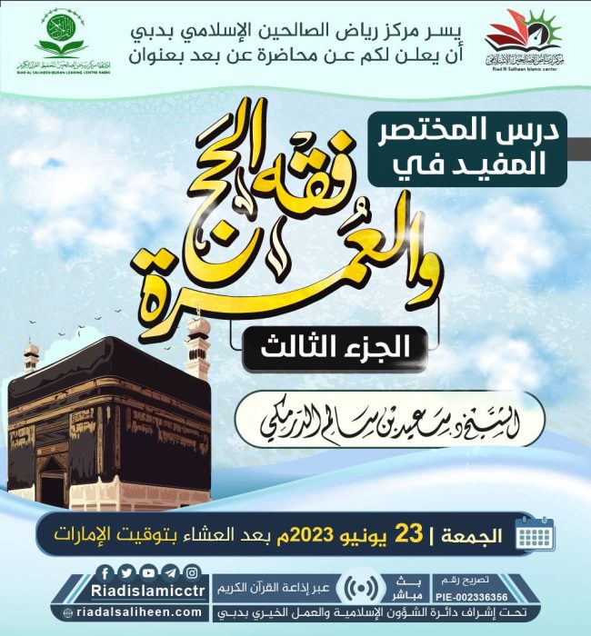 يسر مركز رياض الصالحين الإسلامي بدبي أن يدعوكم للاستماع للبث المباشر “عن بعد” لمحاضرة بعنوان:
