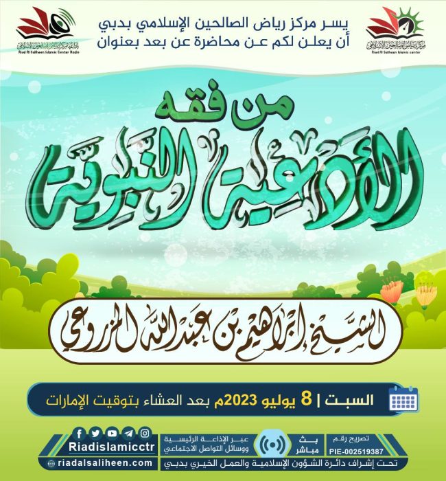يسر مركز رياض الصالحين الإسلامي بدبي أن يدعوكم للاستماع للبث المباشر “عن بعد” لمحاضرة بعنوان: