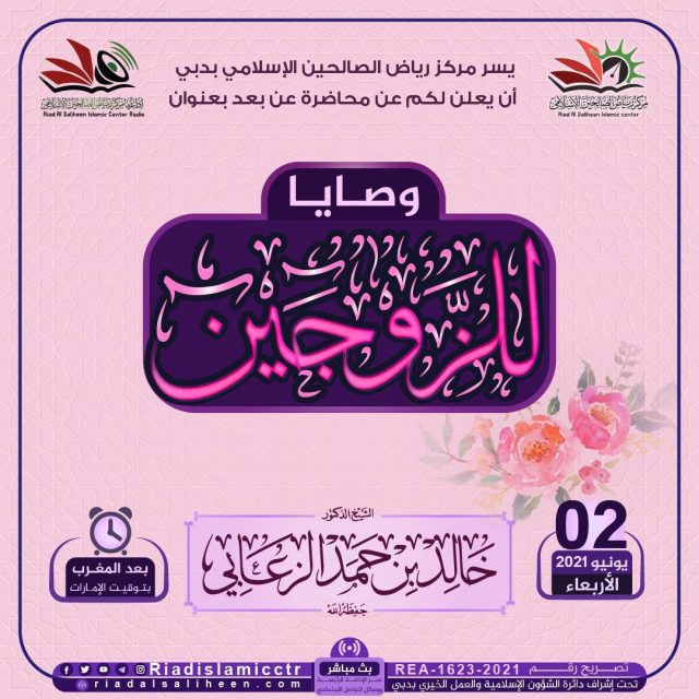يسر مركز رياض الصالحين الإسلامي بدبي أن يعلن لكم عن محاضرة “عن بعد” بعنوان: