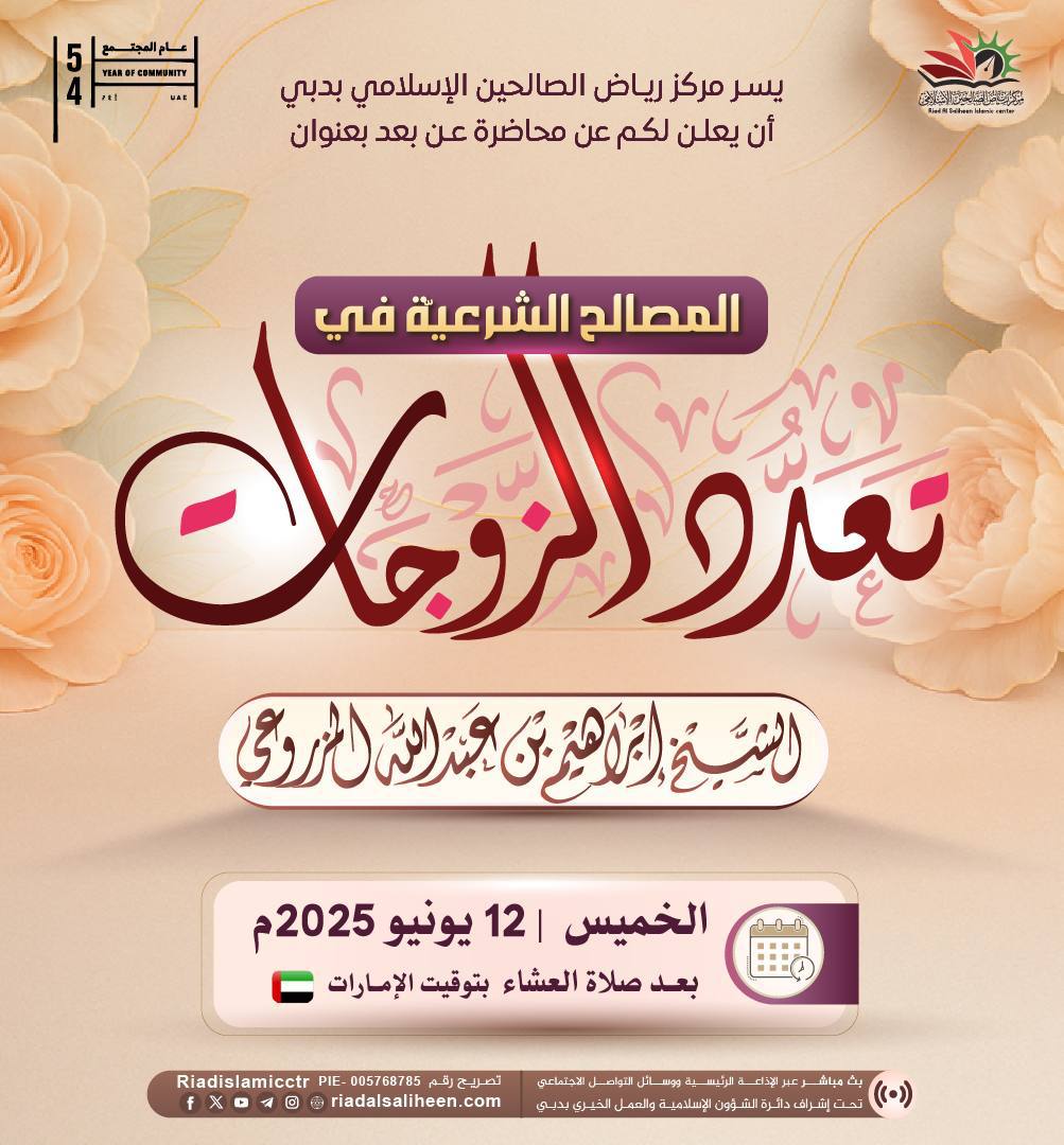 محاضرة عن بعد بعنوان (لمصالح الشرعية في تعدد الزوجات)