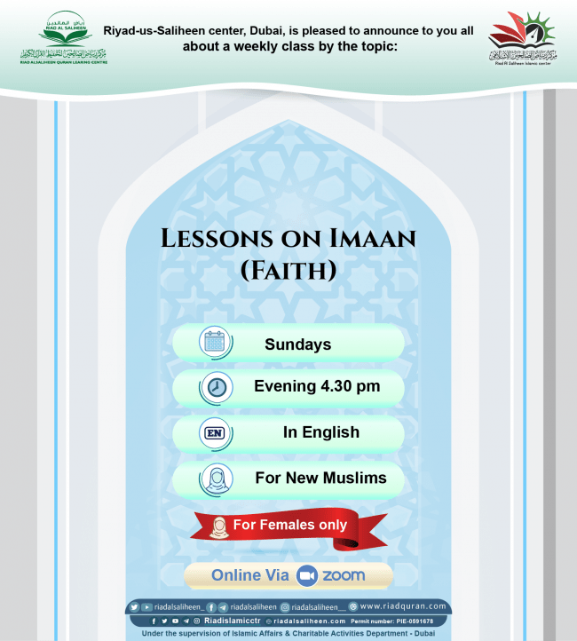 Riyad-us-Saliheen center, Dubai, is pleased to announce to you all about a weekly class by the topic: