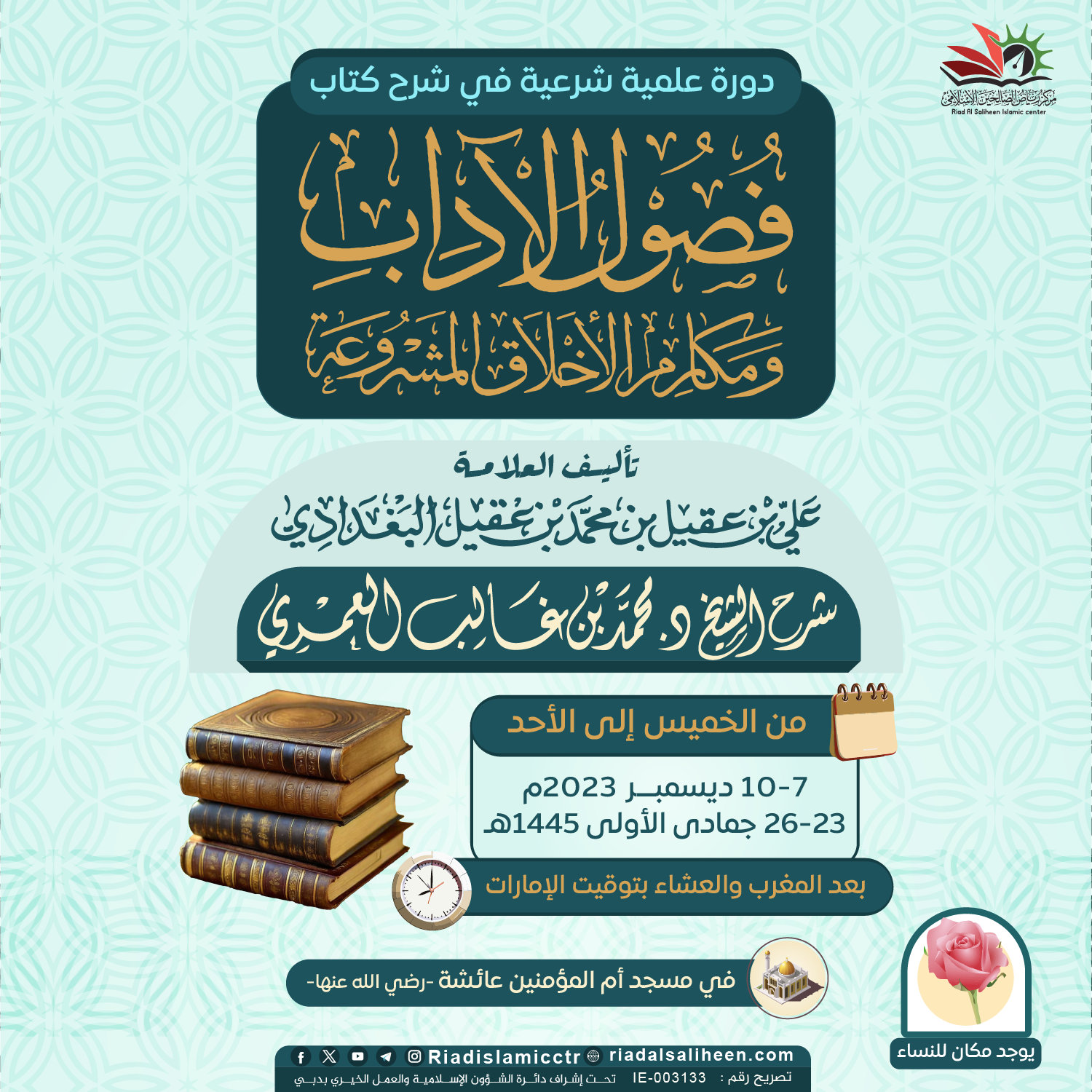 دورة علمية بعنوان (فصول الآداب ومكارم الأخلاق المشروعة )
